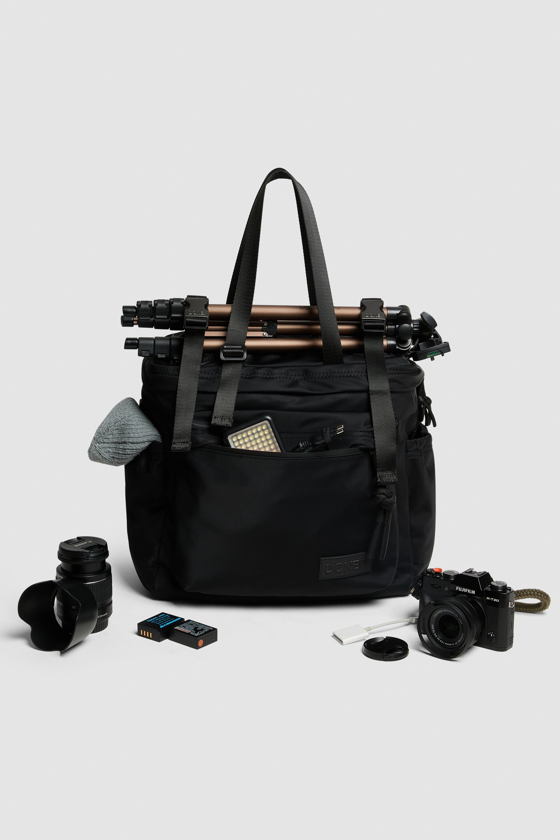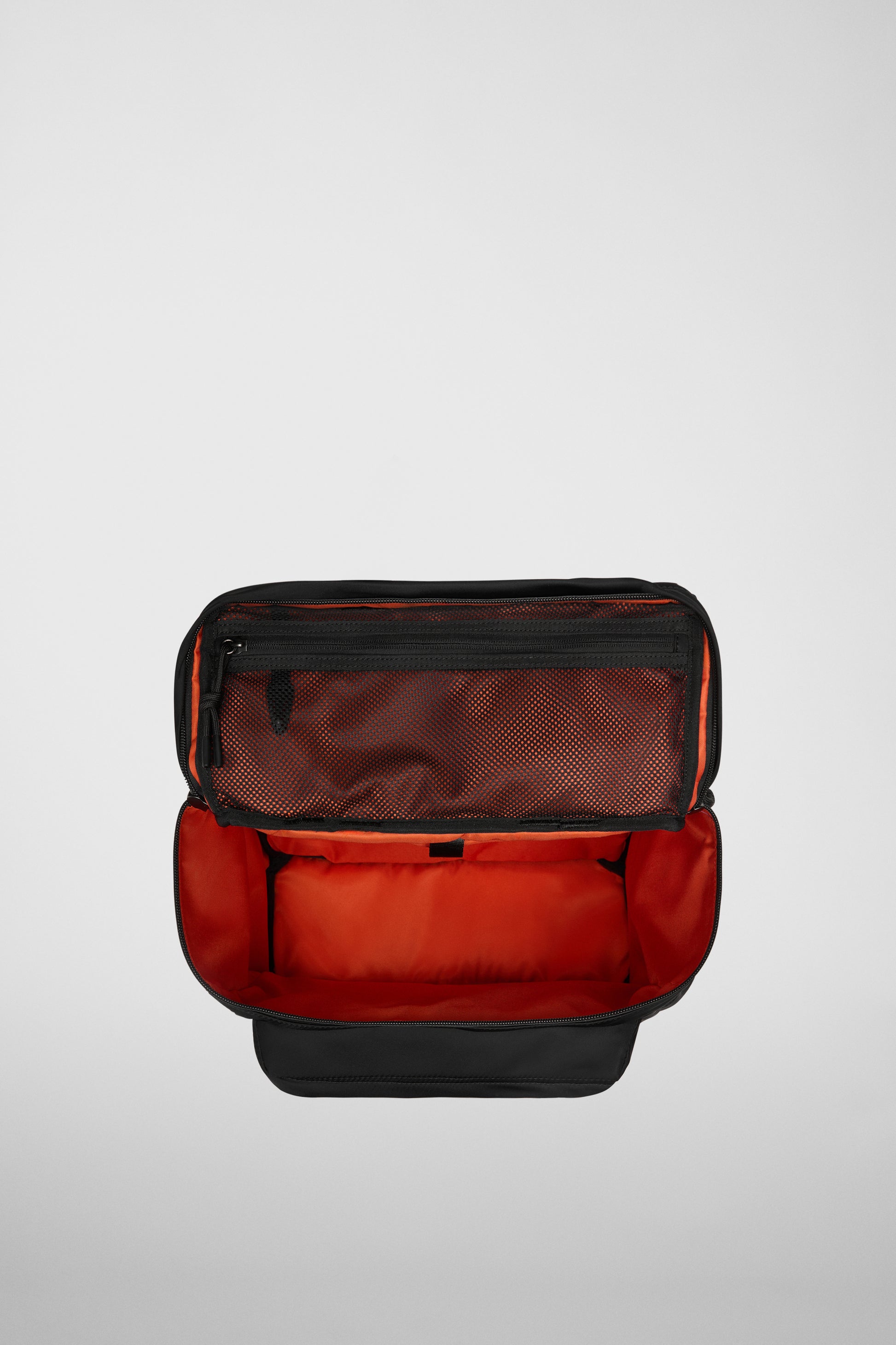 The >East+West< backpack gets its name from its horizontal design. Its different ways of use, its quality and versatility make it suitable for a dynamic lifestyle.