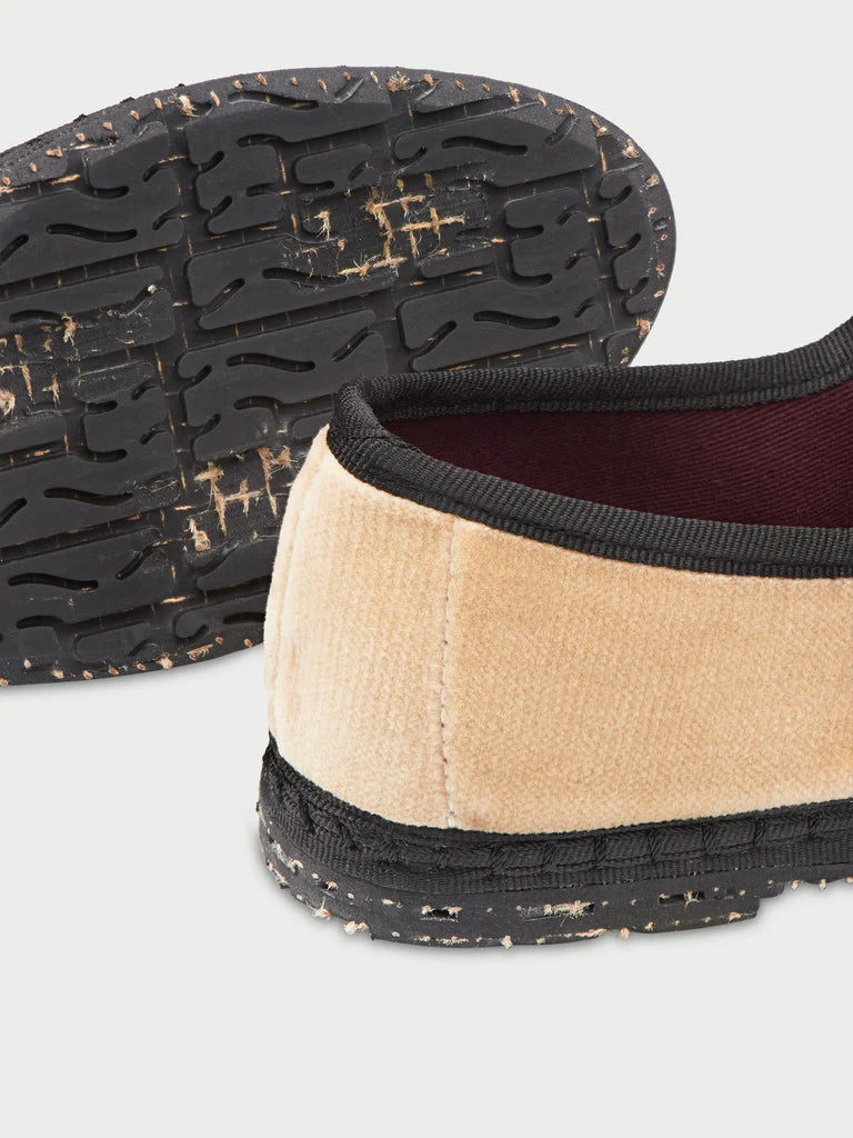 - The outside of the shoe is 100% cotton velvet, and the inside of the shoe is 100% organic cotton with anti-bacterial treatment.