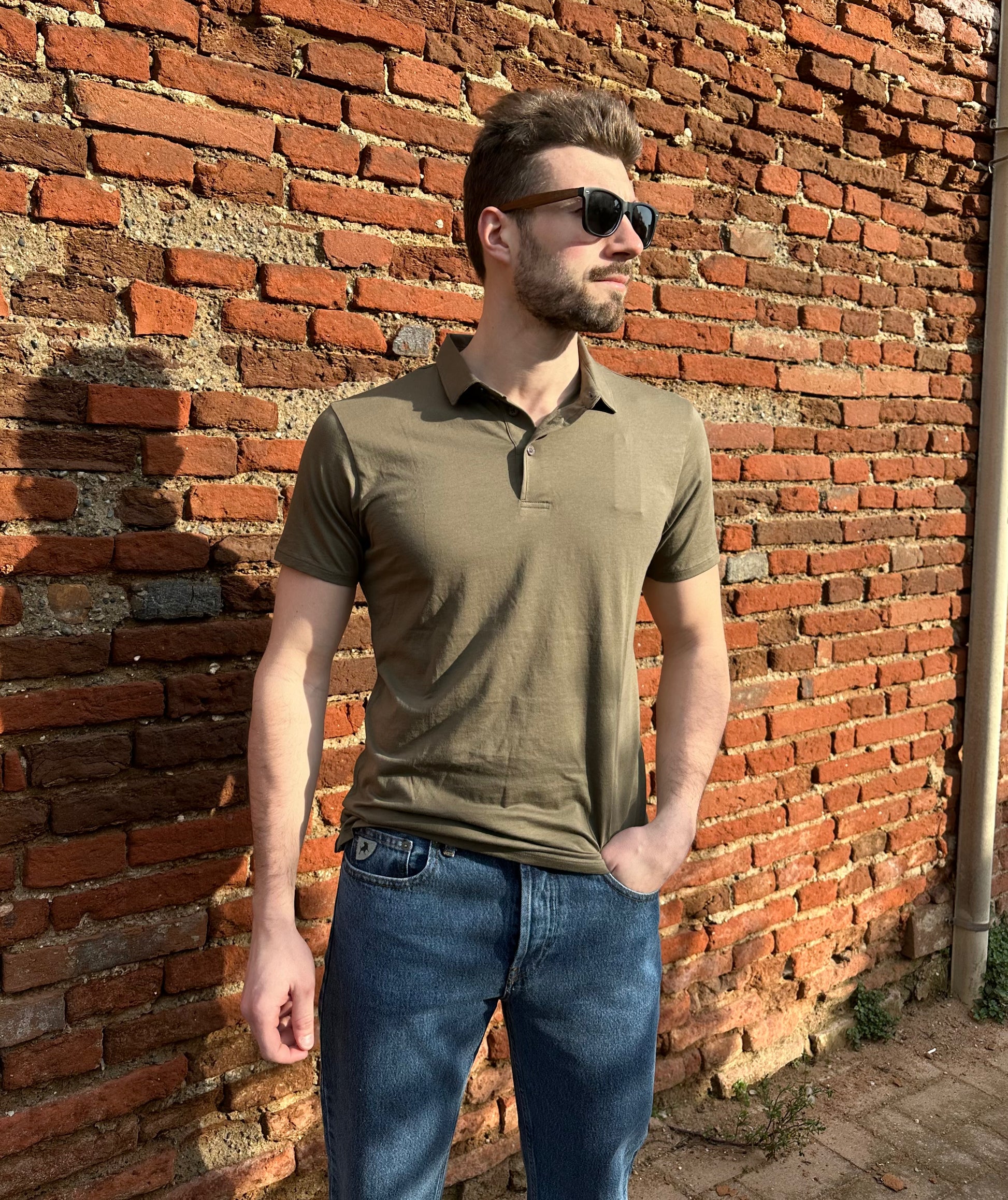 アノニム - Polo Diego 100% Cotone PIMA ペルヴィアーノ ミリタリー グリーン