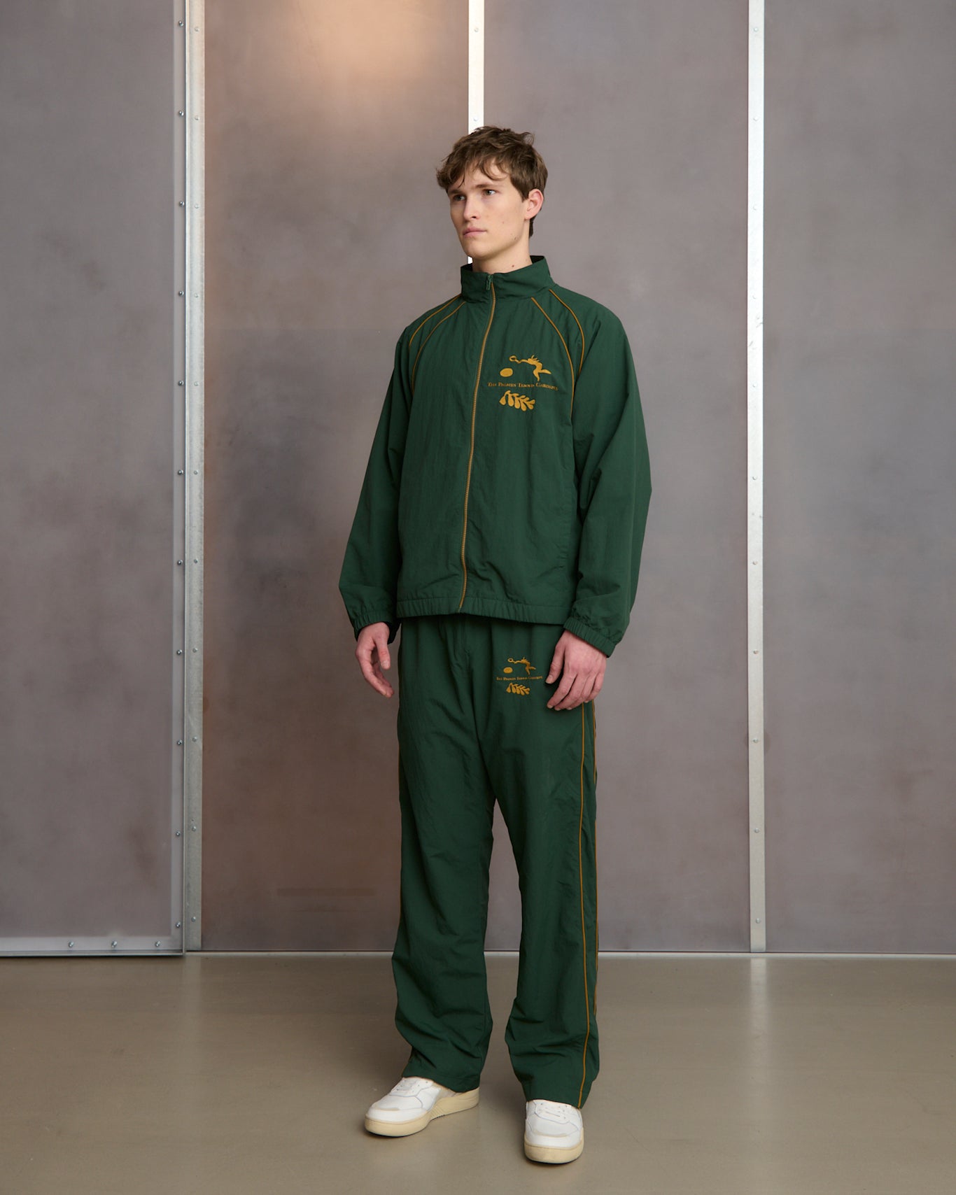 100% Recycled Nylon. It features an embroidery on left leg and contrast lining.