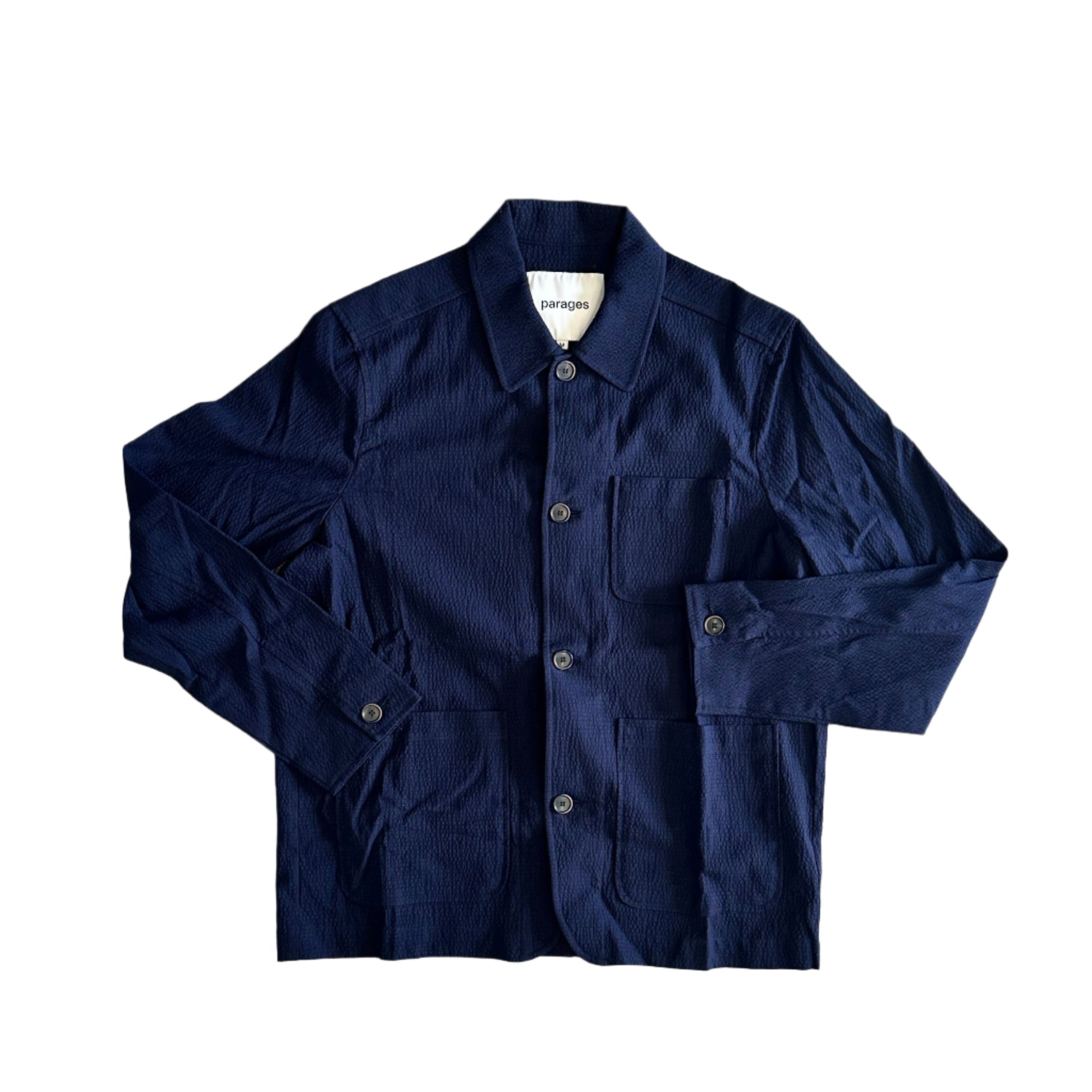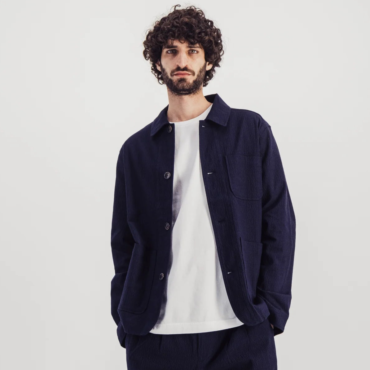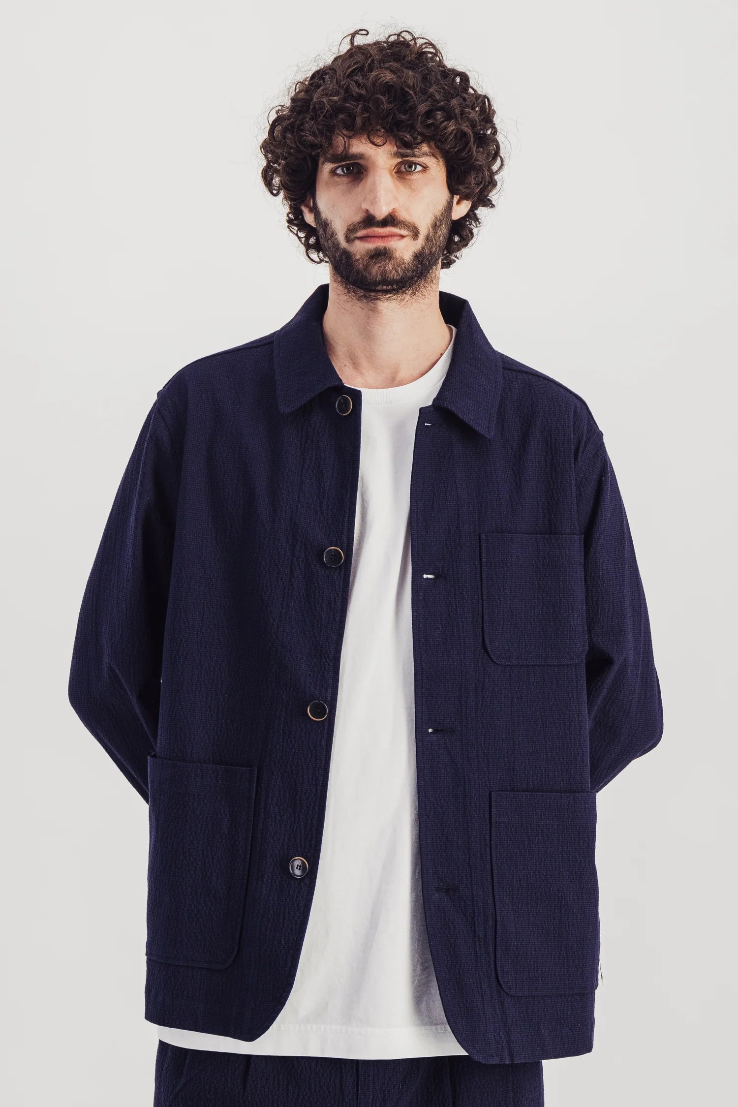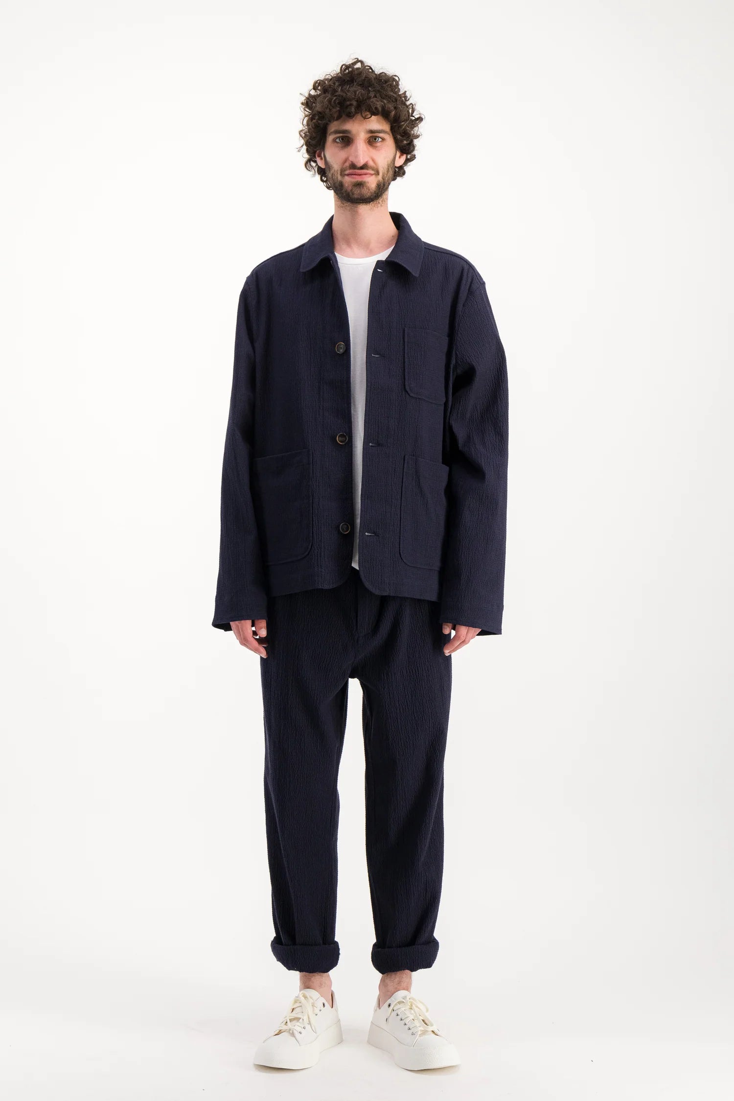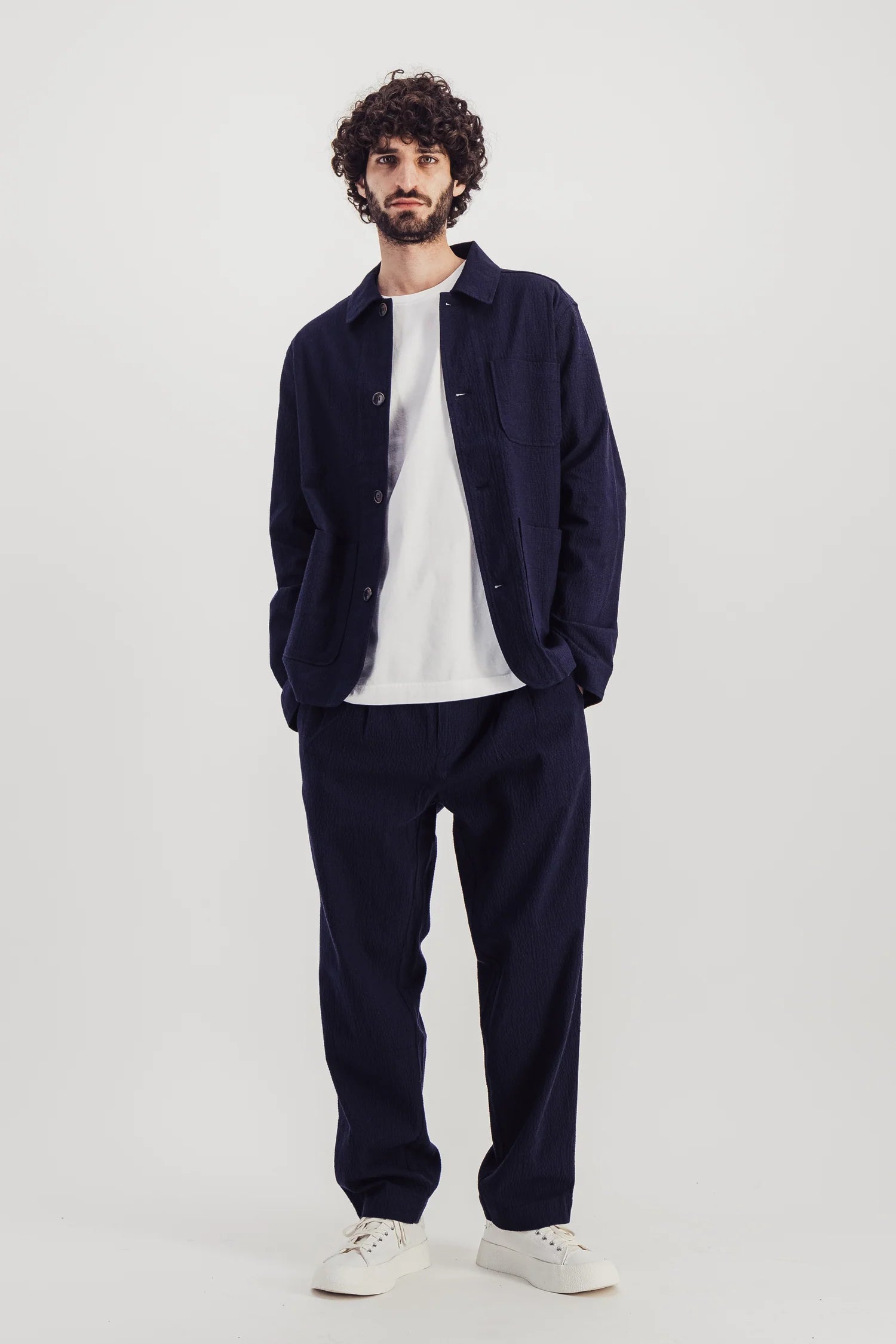 Casual jacket in lightweight seersucker, particularly comfortable to wear in summer, and easy to match.