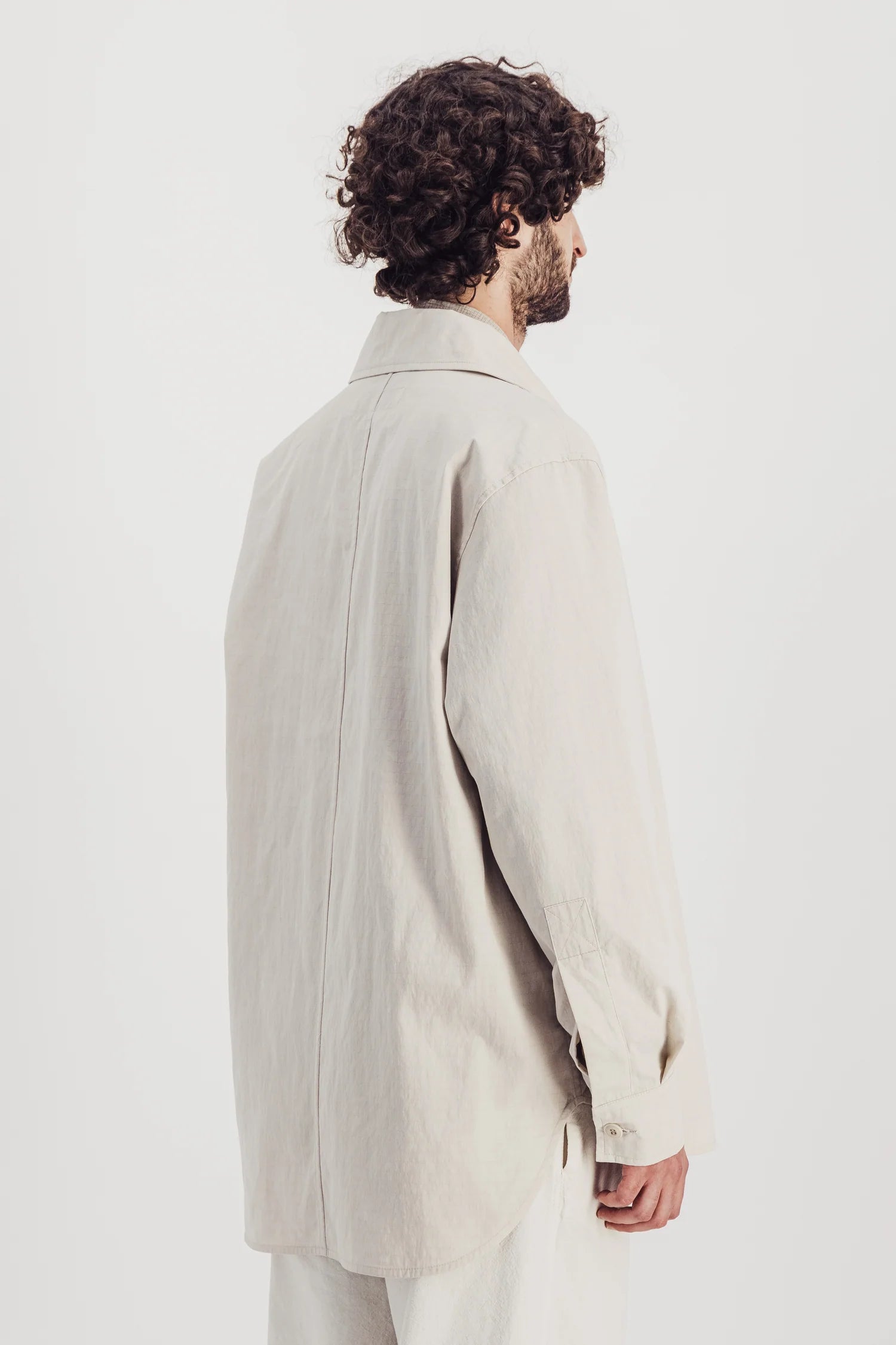 Overshirt with a generous shape in water-repellent ripstop, which can also be worn as a mid-season jacket.