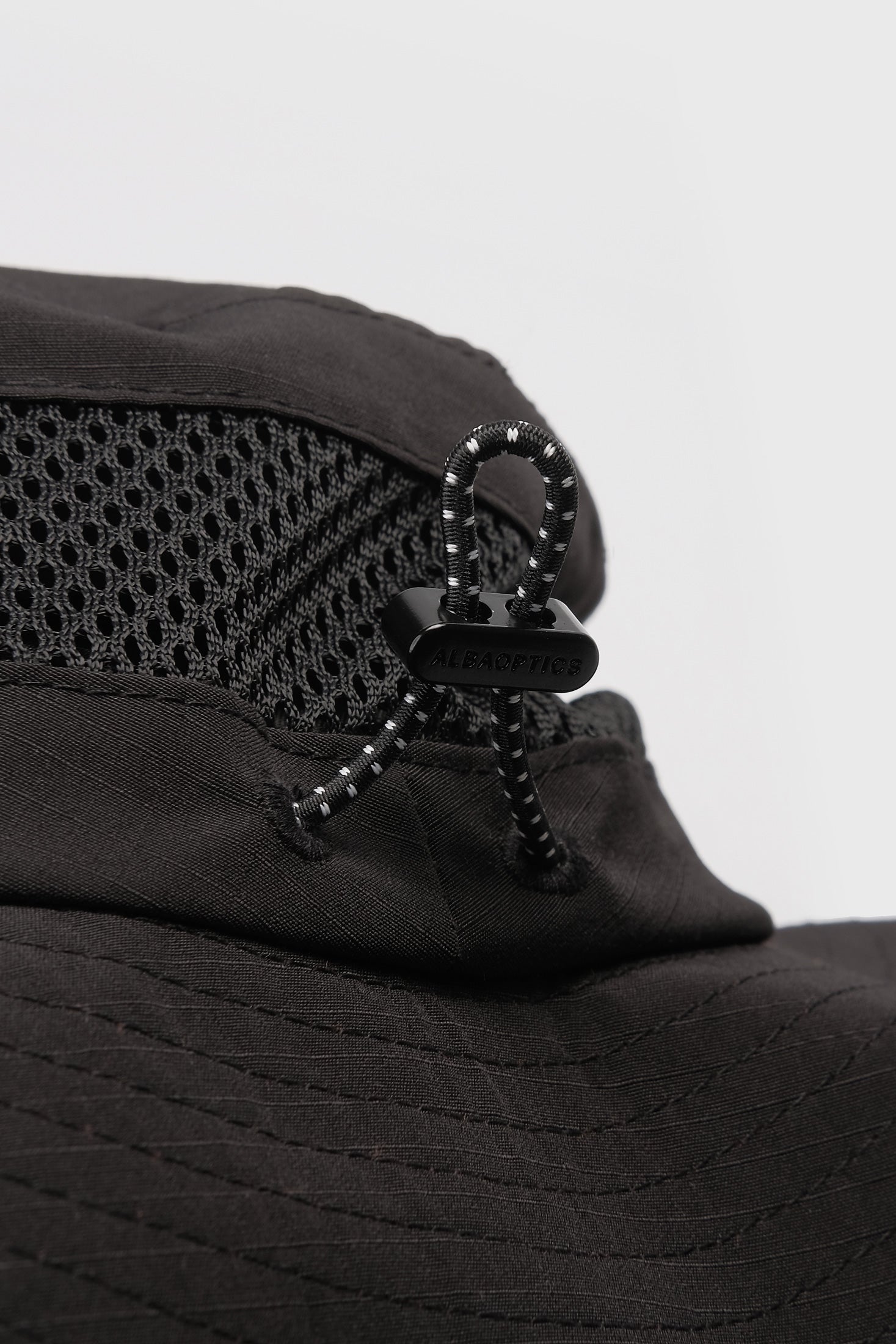 The ultimate adventure hat, are you up for it? A flat top boonie-style hat in durable ripstop nylon. Wide brim for sun protection with a fluro orange underbrim. With a generous 8cm crown depth and 60cm cap circumference, an adjustable elastic drawstring ensures a perfect fit for all dome sizes. Metal eyelets and breathable mesh band for ventilation on hot days. Featuring a subtle black “albaoptics” logo embroidery on hat band. Get out there.