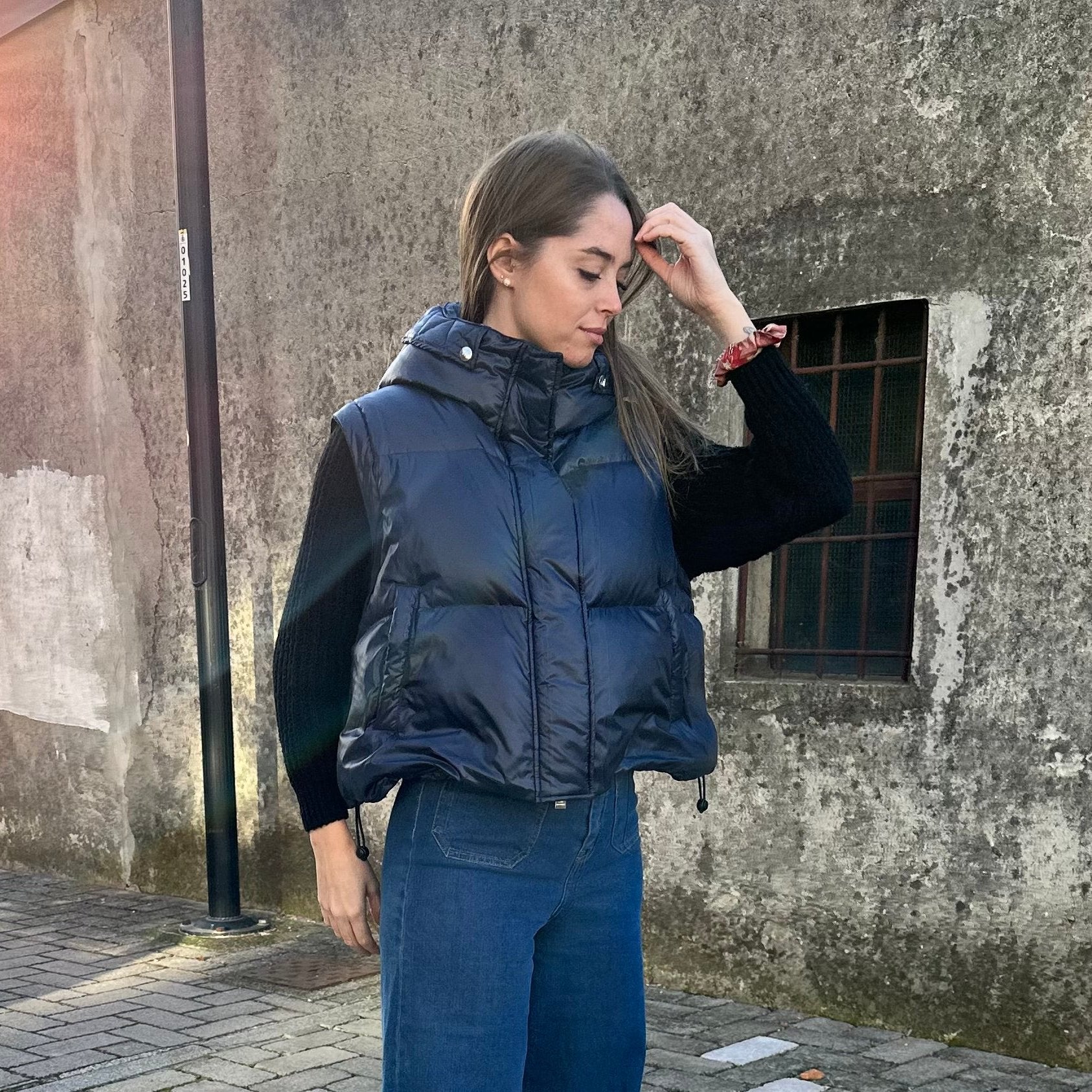 Chiara is characterized by zips that allow you to remove garment components such as sleeves and the final band, creating an unexpected play of volumes. The model is adjustable at the waist with an elastic drawstring that allows you to customize the fit.