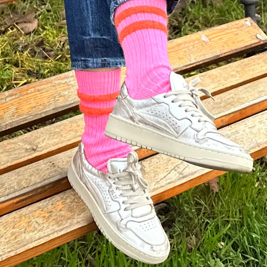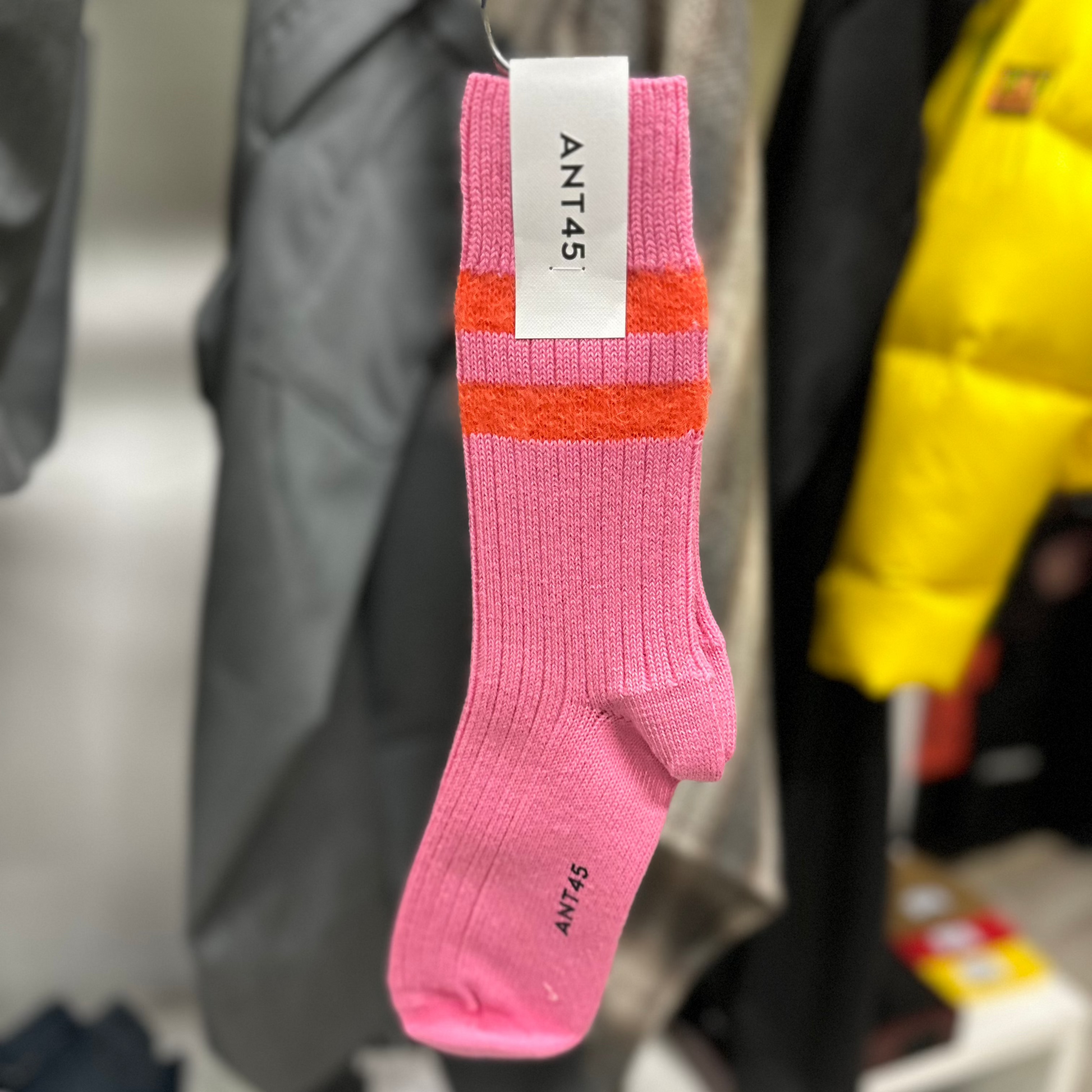 Short socks in superior cotton, wide rib and embossed mohair stripe detail on the wrist.