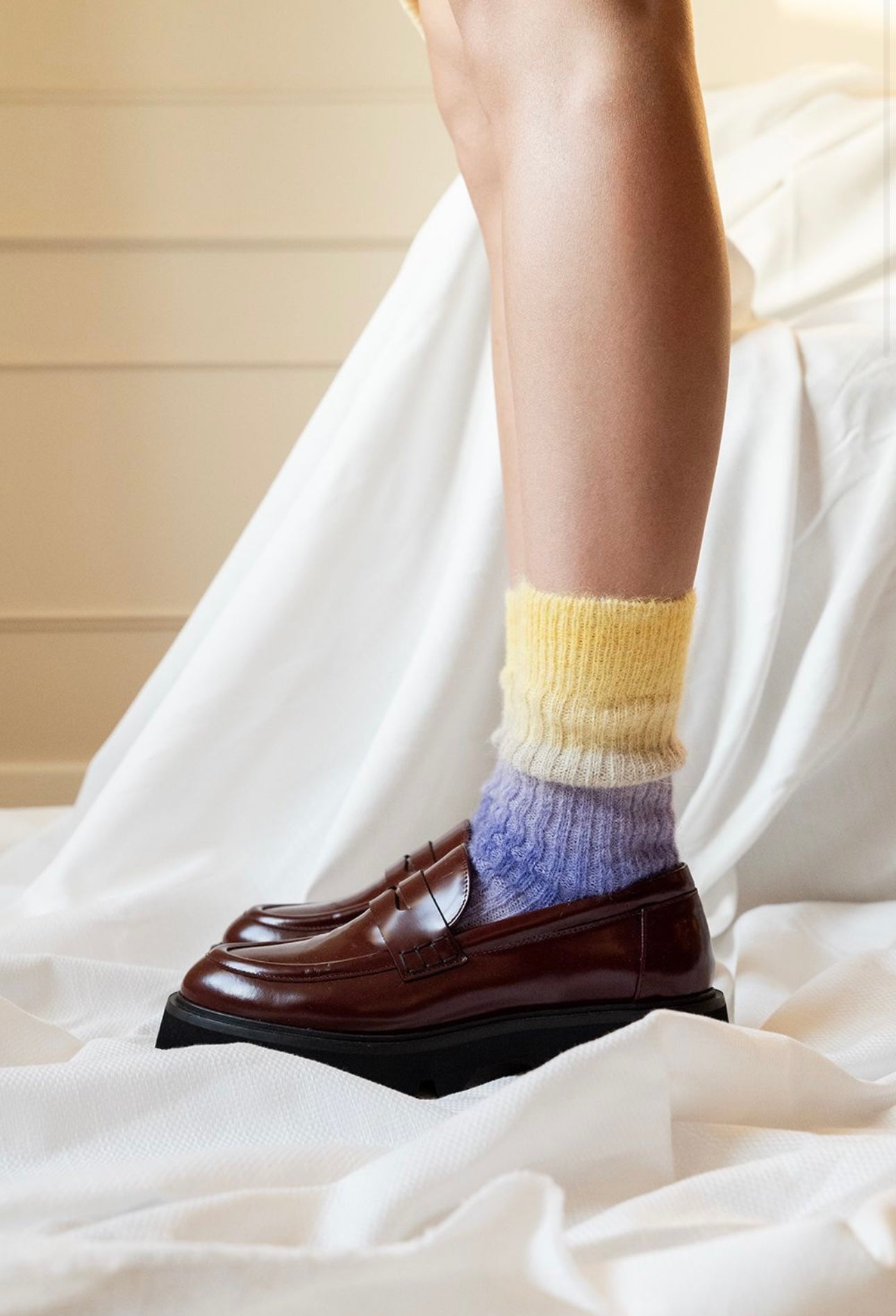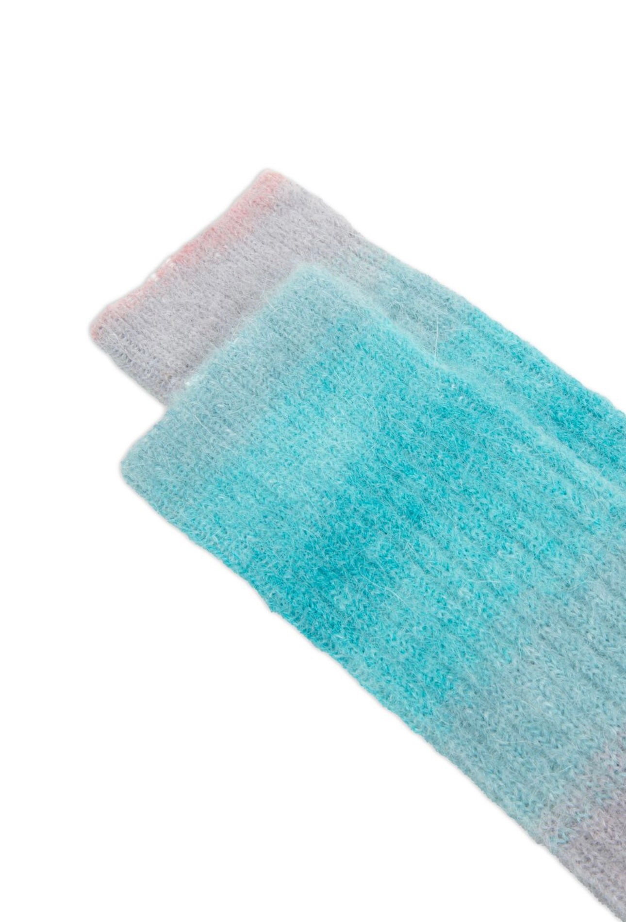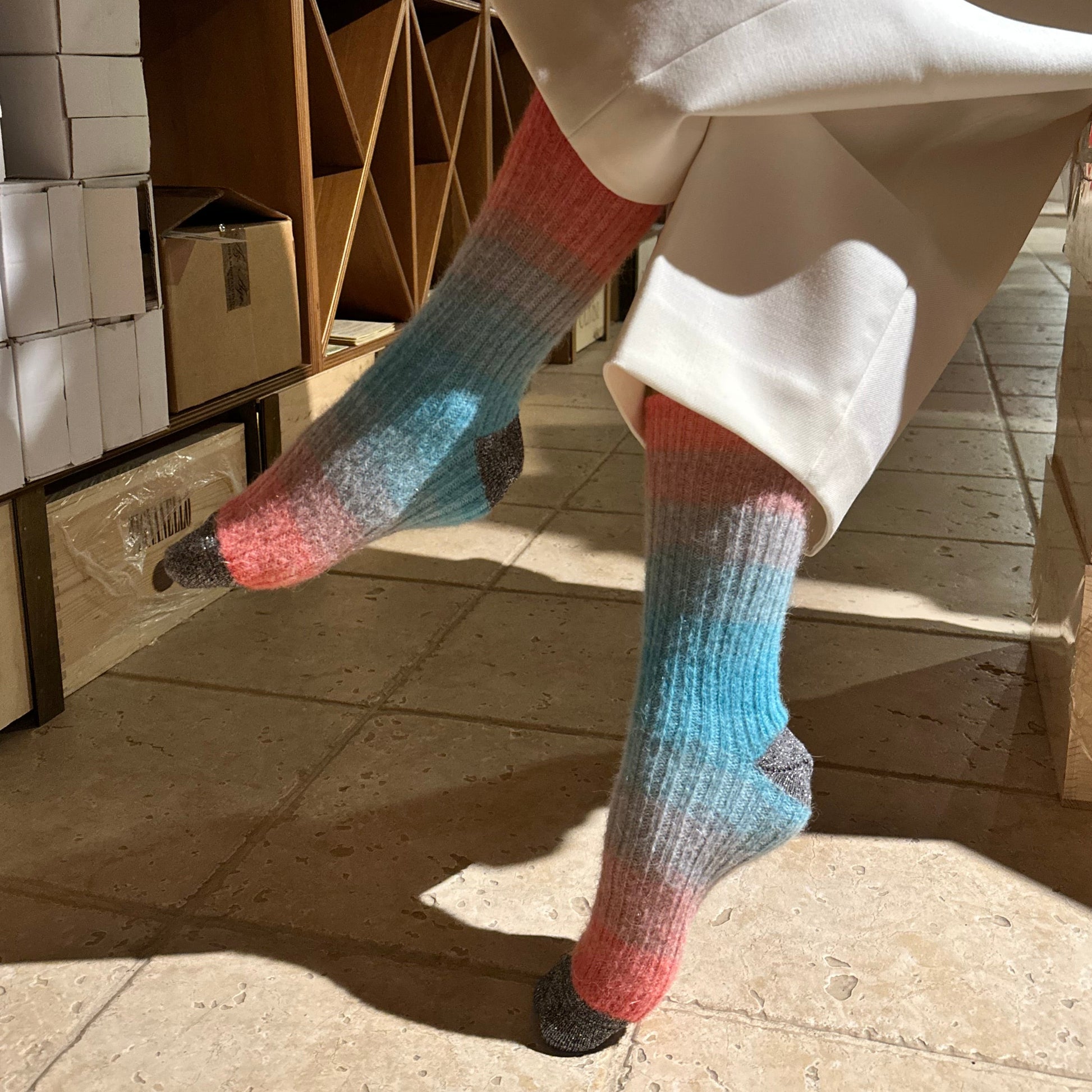 Short socks in printed mohair, tie and dye effect, lurex heel and toe detail.