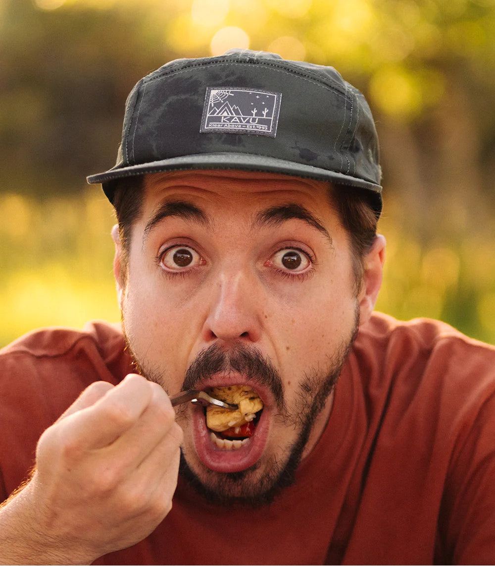 Ain't no party like a Tumbler party. This 5 panel camp cap brings the good times with it wherever it goes. Stand out prints on 100% polyester and an adjustable nylon webbing back strap complete this party palace.