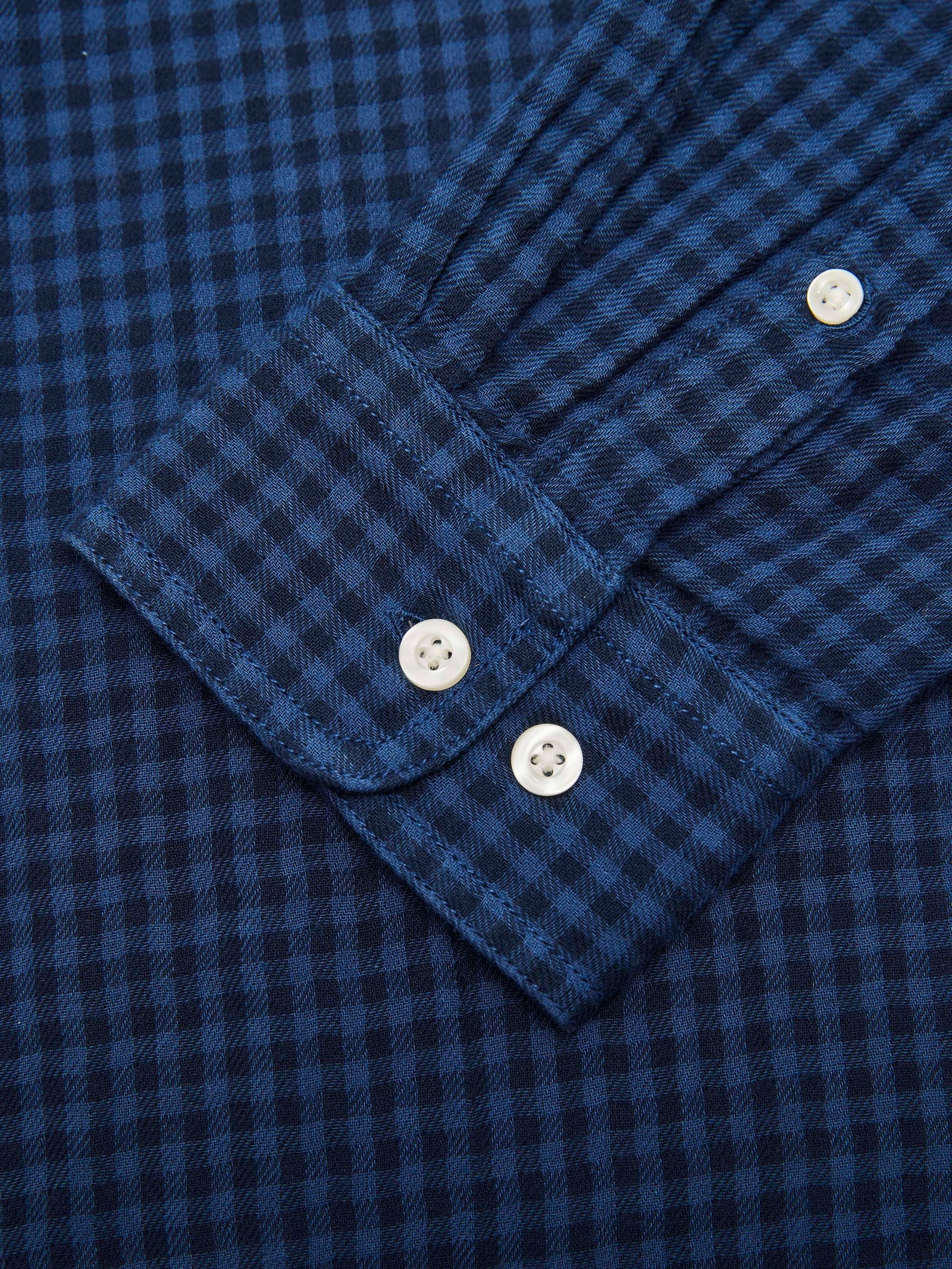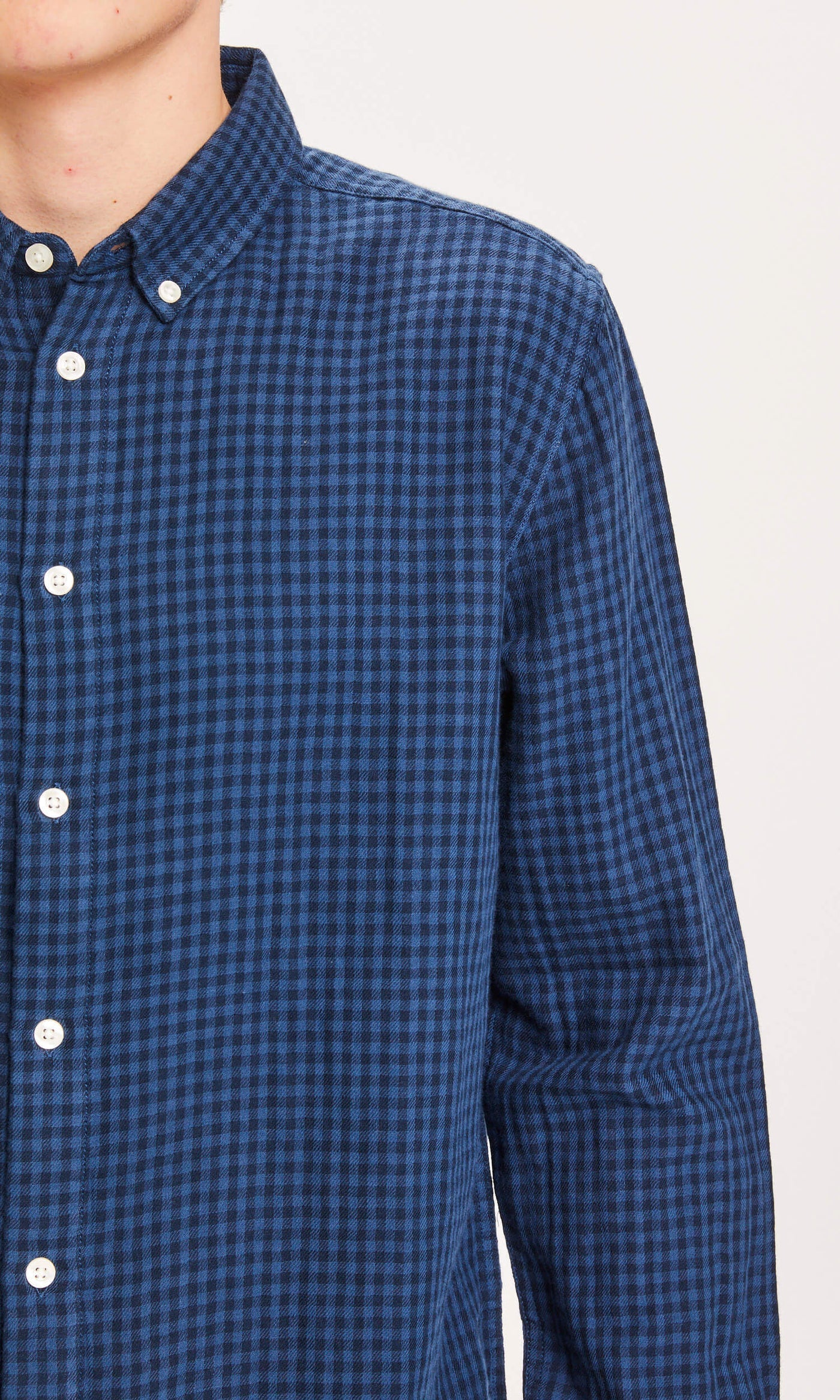 The KnowledgeCotton Apparel shirt has a regular shape with a curved hem in a soft, double-layered fabric and molded with a small vichy check pattern.