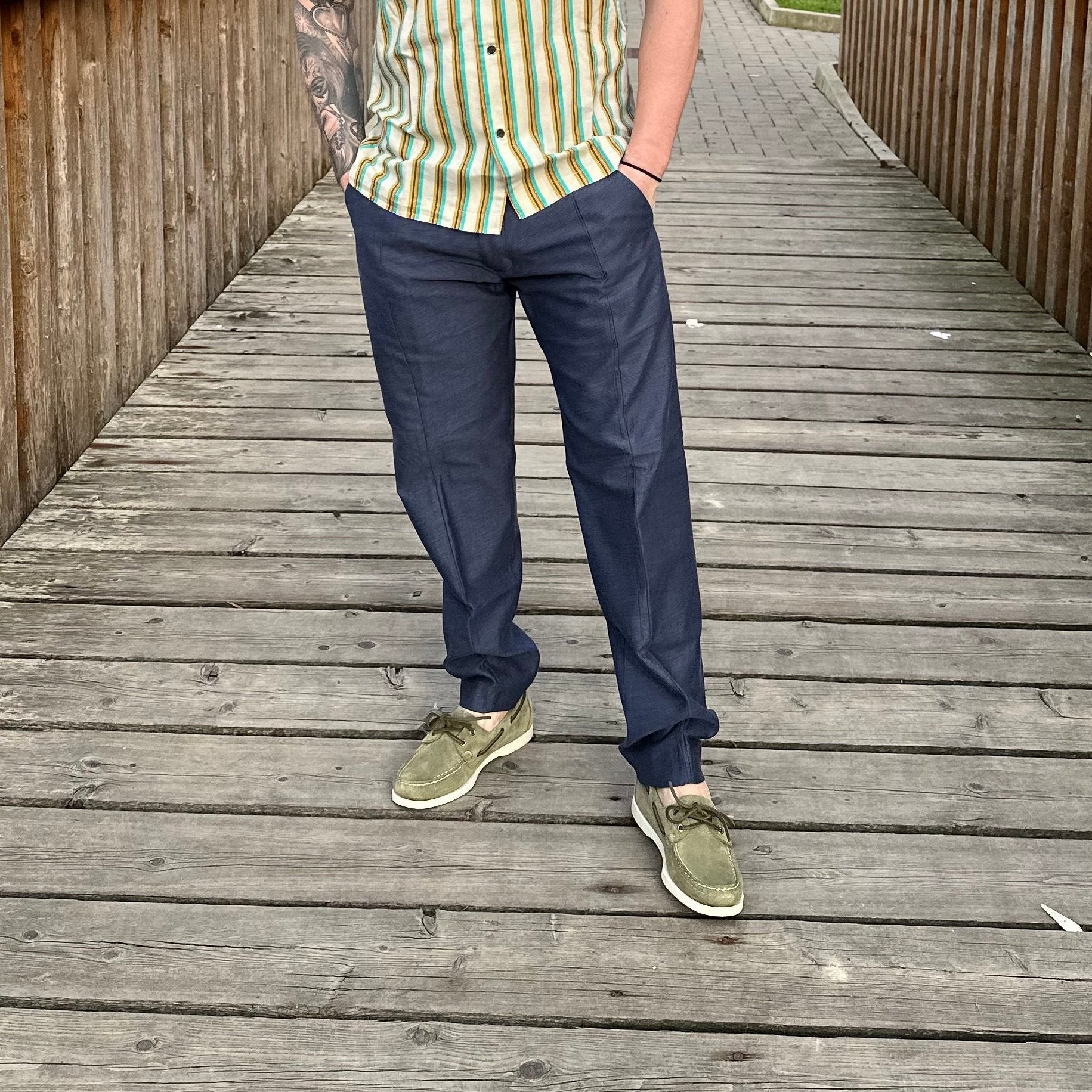 Magnificent carrot cut chinos made from 100% cotton Japanese twill. Button fly. Welt pockets on the sides. Pockets with buttoned flaps at the back. Seam on the front of the leg. Ankle length. Very beautiful Italian manufacturing.
