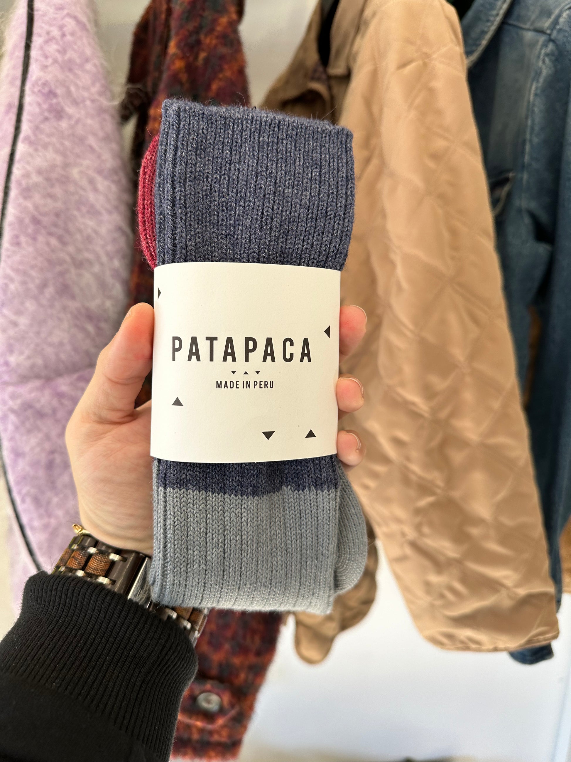 These Tri colored socks feature a specially engineered Baby Alpaca & Bamboo yarn combination to harness the qualities of both of these amazing fibers. This particular blend features the comfort and warmth of the Alpaca mixed with the durability and cool softness of bamboo. These are the heaviest of weight for our all season socks. As with all of the Patapaca range , these are naturally hypoallergenic anti-microbial. Climate Control for your feet . Great for cozy life or life outdoors.