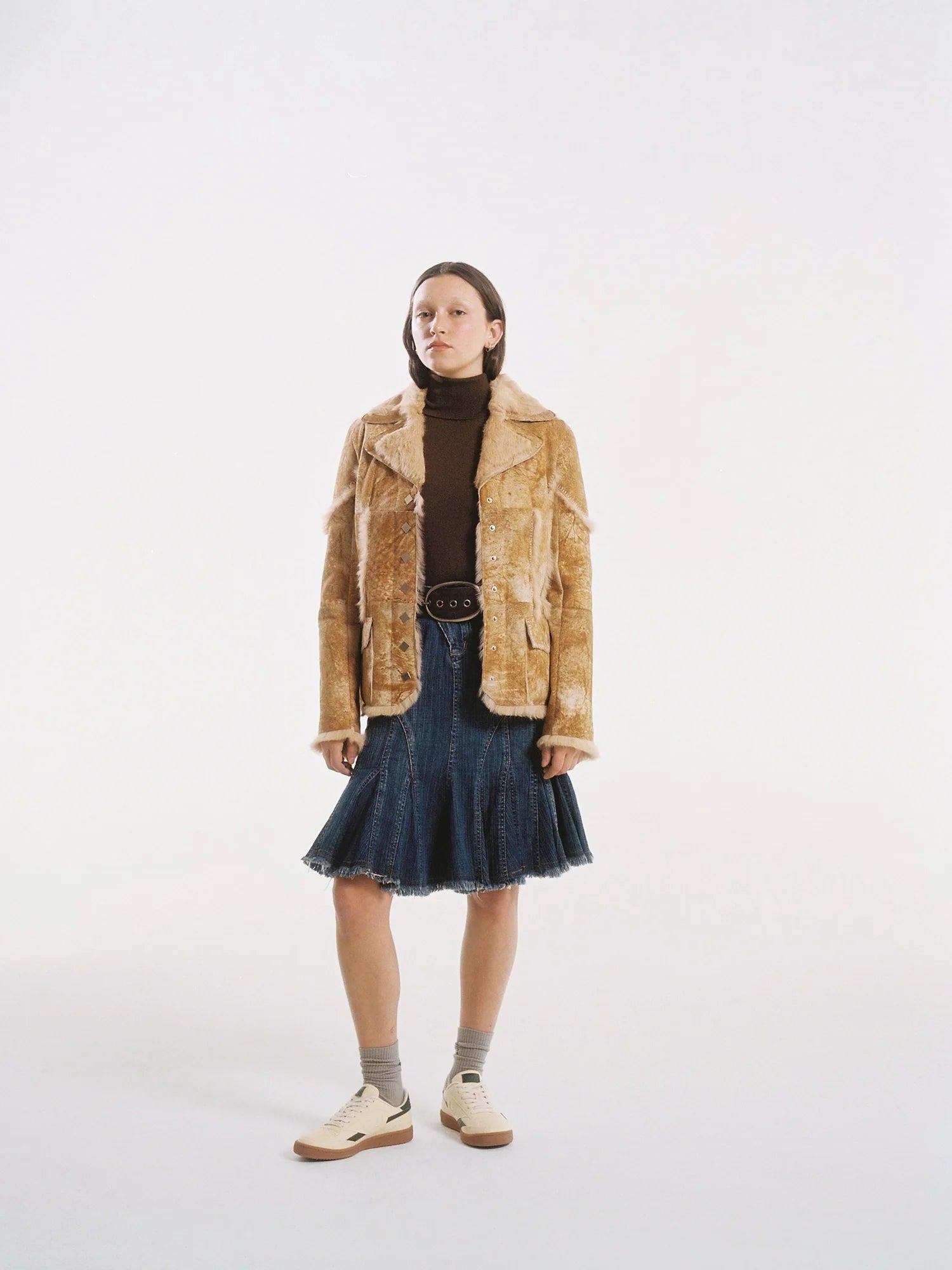 - Green stripe in cactus napa, one of the most innovative plant-based alternatives to leather.