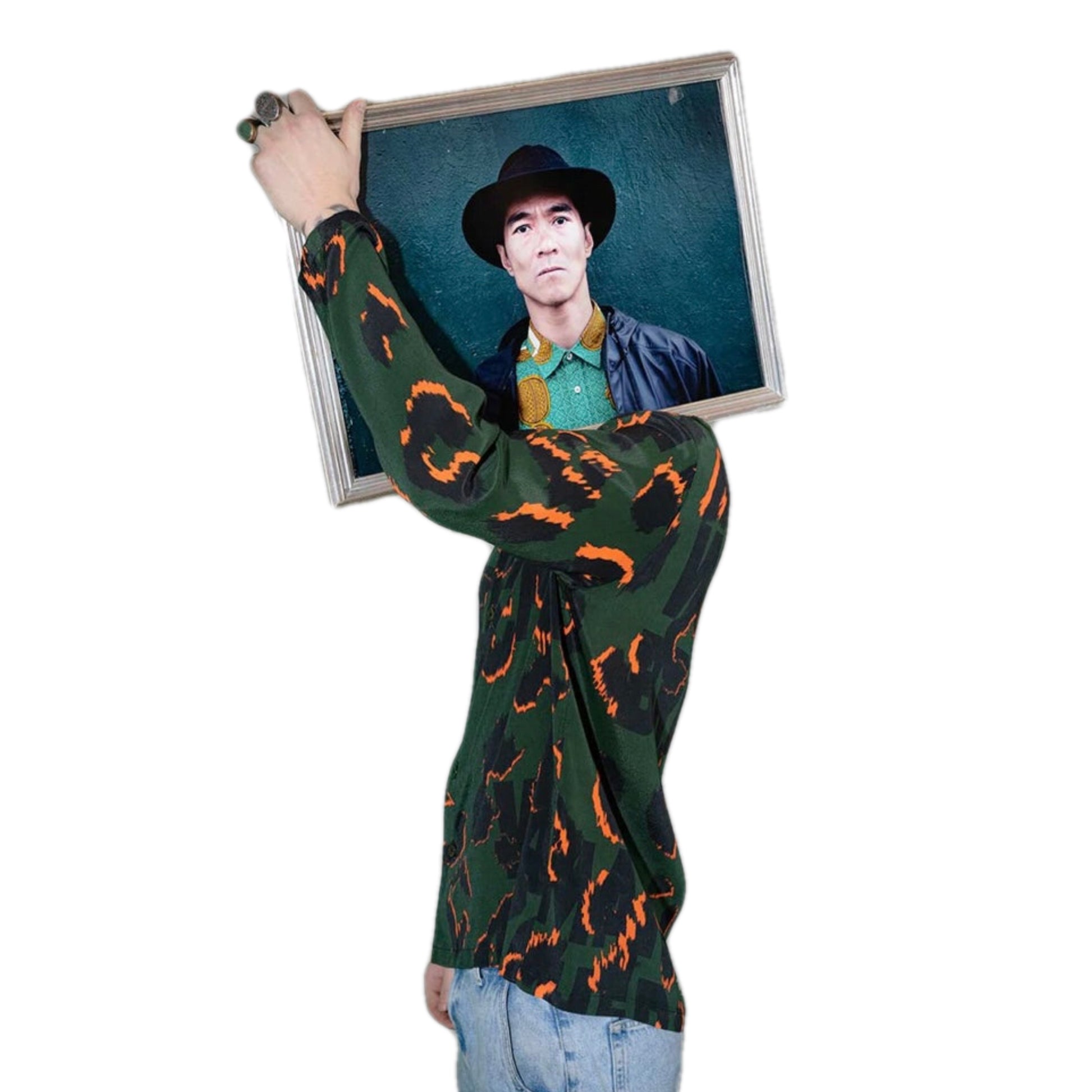 Choose the classic sizes of the regular line by Waxman Brothers with orange and black leopard motifs on a Verdone background.